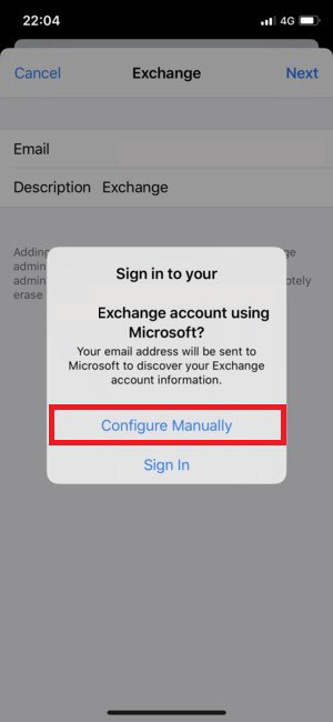 4)Tap Microsoft Exchange. |